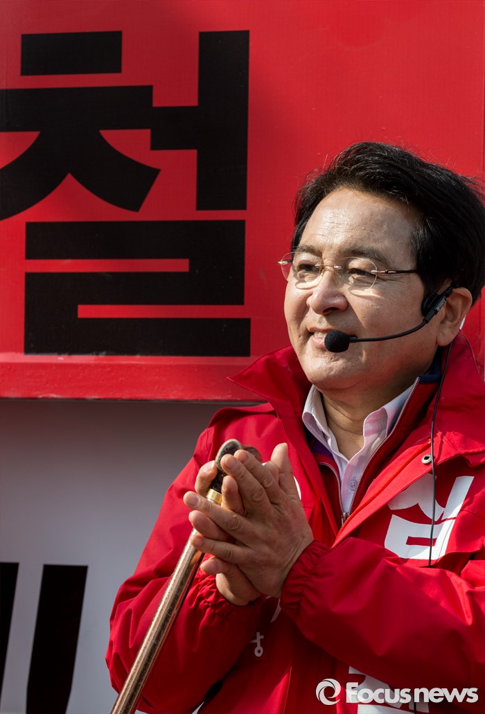 심재철 의원은 또 "어떤 사람들은 4선 의원이기 때문에 고인물이라고 하지만 공약을 잘 완수했다고 상도 받았다. 앞으로도 일을 잘 해내겠다"고 다짐했다.(안양=포커스뉴스) 8일 오전 경기 안양시 범계역 인근에서 열린 심재철 새누리당 안양동을 후보 지원유세에서 심 후보가 박수치고 있다. 2016.04.08 양지웅 기자