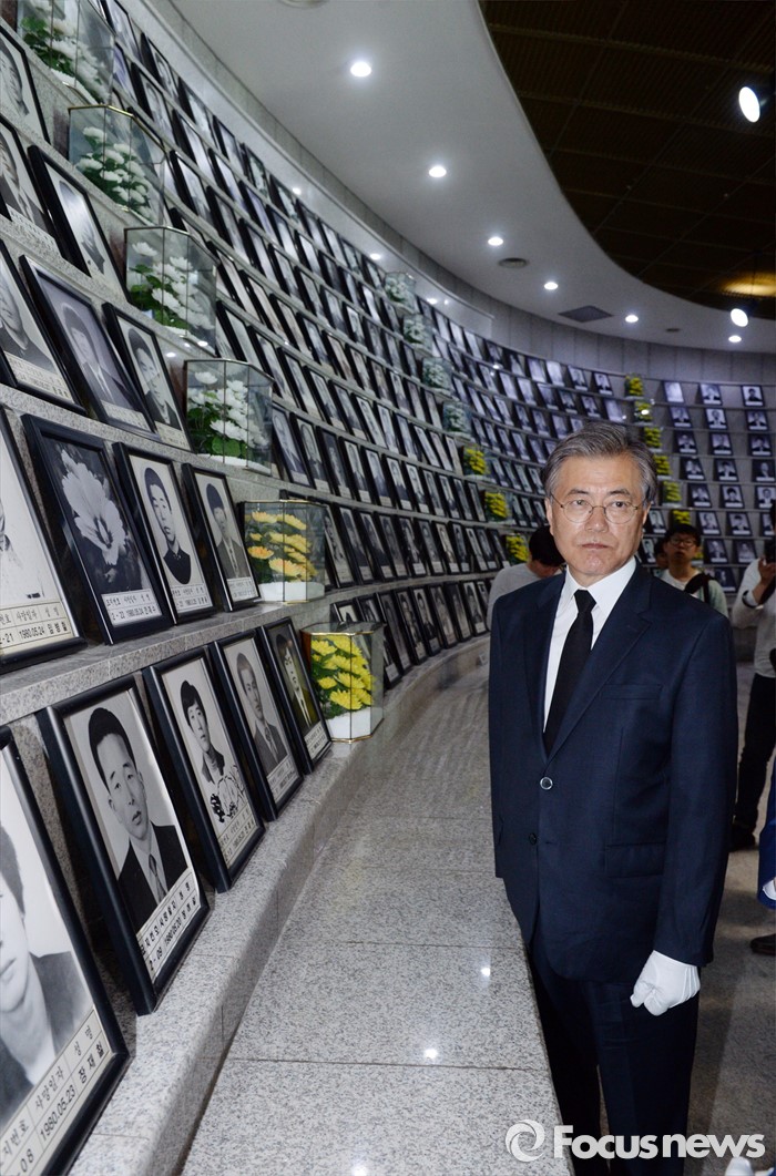 (광주=포커스뉴스) 8일 오전 광주 국립 518묘지를 찾은 문재인 전 더불어민주당 대표가 유영봉안소에서 추모하고 있다.