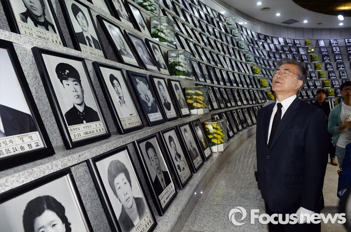 (광주=포커스뉴스) 8일 오전 광주 국립 518묘지를 찾은 문재인 전 더불어민주당 대표가 유영봉안소에서 추모하고 있다.