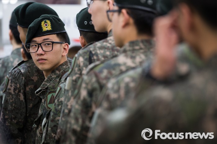 (서울=포커스뉴스) 4.13총선 사전투표 첫째날인 8일 오후 서울 서초구 방배4동 주민센터에 설치된 사전투표소에서 수방사 장병들이 투표를 하기위해 기다리고 있다.