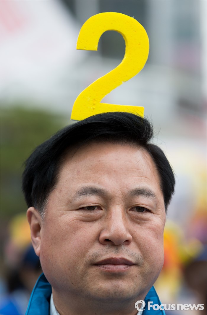 | △ 2번 머리띠 착용한 김두관 후보 |