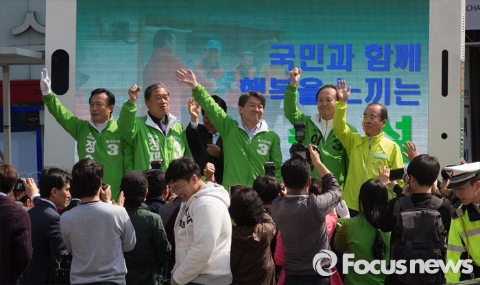 (천안=포커스뉴스) 안철수 국민의당 대표가 8일 오후 충남 천안 신부동 신세계백화점 앞에서 천안에 출마한 후보의 지지를 호소하고 있다.