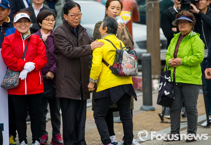 (김포=포커스뉴스) 8일 오후 경기 김포시 사우동 인근에서 열린 김동식 새누리당 김포갑, 홍철호 김포을 후보 합동지원유세에서 유권자들이 대화하고 있다.