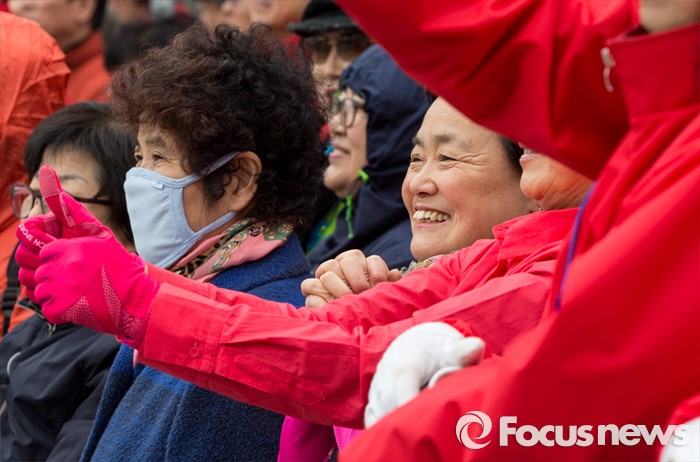 (김포=포커스뉴스) 8일 오후 경기 김포시 사우동 인근에서 열린 김동식 새누리당 김포갑, 홍철호 김포을 후보 합동지원유세에서 지지자들이 박수치고 있다.