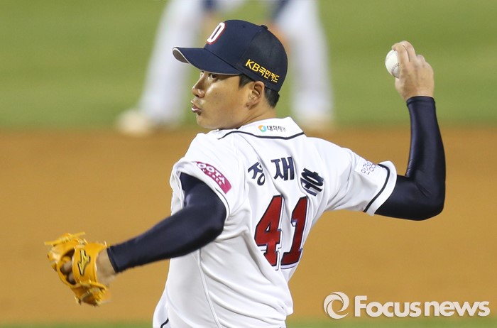 (서울=포커스뉴스) 8일 서울 잠실구장에서 열린 2016 프로야구 넥센-두산 경기 7회초 두산 투수 정재훈이 등판해 투구하고 있다.
