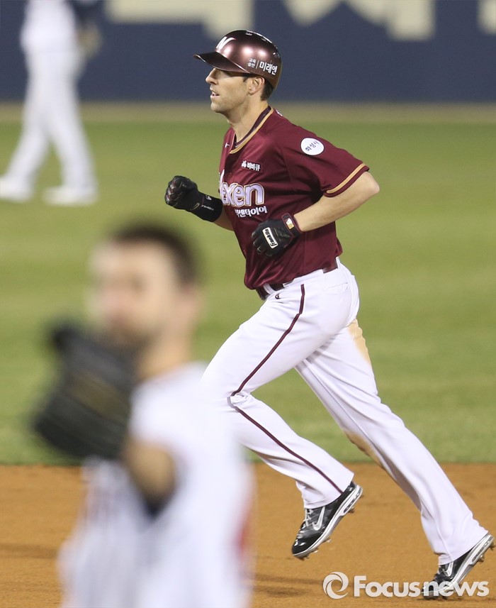 (서울=포커스뉴스) 8일 서울 잠실구장에서 열린 2016 프로야구 넥센-두산 경기 7회초 넥센 선두타자 대니 돈이 우월 1점 홈런을 치고 베이스를 돌고 있다.