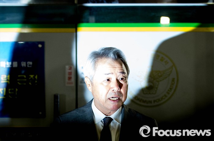 (서울=포커스뉴스) 정우현 MPK그룹 회장이 경찰 조사를 받기 위해 9일 오전 서울 서대문경찰서에 출석, 준비한 사과문을 읽고 있다. '미스터피자'를 운영하는 MPK 그룹의 정 회장은 지난 2일 서대문구의 한 건물 경비원 황모(58)씨의 뺨을 때린 혐의를 받고 있다.