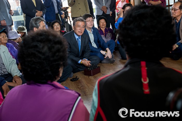 (광주=포커스뉴스) 문재인 더불어민주당 전 대표가 9일 오전 광주광역시 서구 발산마을회관을 방문해 어르신들과 대화를 나누고 있다.
