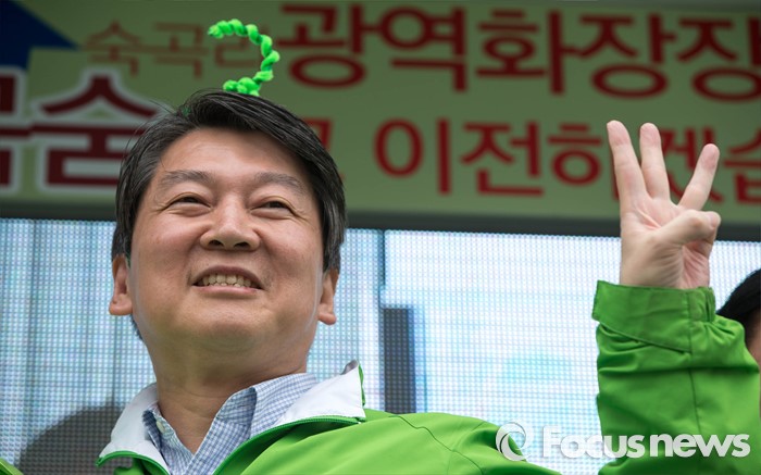 (수원=포커스뉴스) 9일 오후 수원시 장안구 수원종합운동장에서 열린 국민의당 합동유세에 참석한 안철수 대표가 시민들을 향해 활짝 웃고 있다.