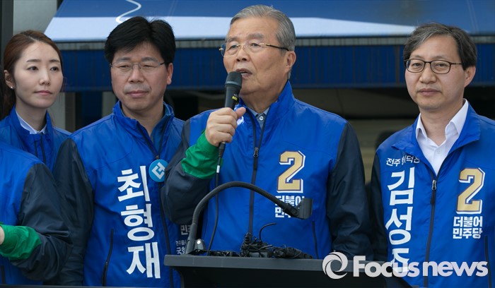 특히, 조국 서울대학교 교수를 비롯, 전북 출신의 이석현 국회부의장, 진성준 의원, 박용진 대변인 등이 전주권 삼총사를 응원하는 영상메시지도 소개된다.1일 오전 전북 전주 모래내시장 입구에서 열린 더불어민주당 최형재(왼쪽) 전주을, 김성주(오른쪽) 전주병 후보 유세에 참여한 김종인 비대위 대표 겸 선대위원장이 지지를 호소하고 있다. 2016.04.01 박동욱 기자