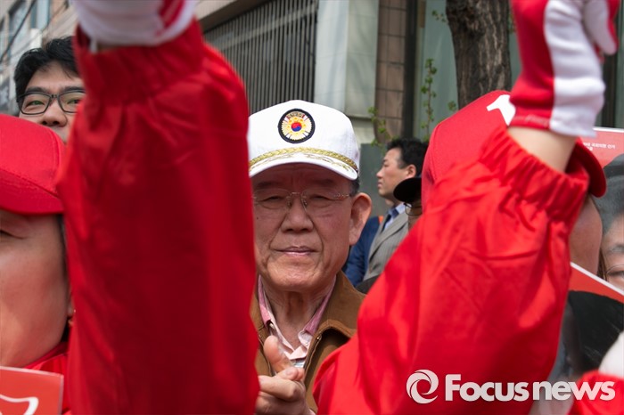 (서울=포커스뉴스) 10일 오전 서울 강동구 양재대로 둔촌시장 앞에서 시민들이 이재영 새누리당 강동을 후보 지원유세를 보고 있다.