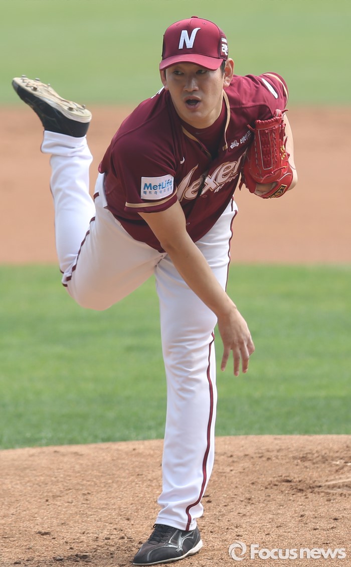 (서울=포커스뉴스) 10일 서울 잠실구장에서 열린 2016 프로야구 넥센-두산 경기에서 1회말 넥센 선발투수 양훈이 투구하고 있다.