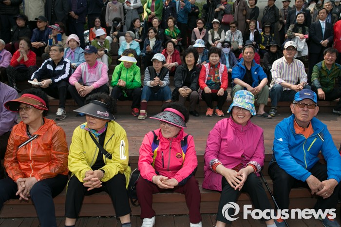 (서울=포커스뉴스) 10일 오전 서울 송파구 성내천 물빛광장에서 시민들이 김을동 새누리당 송파병 후보 유세를 보고 있다.
