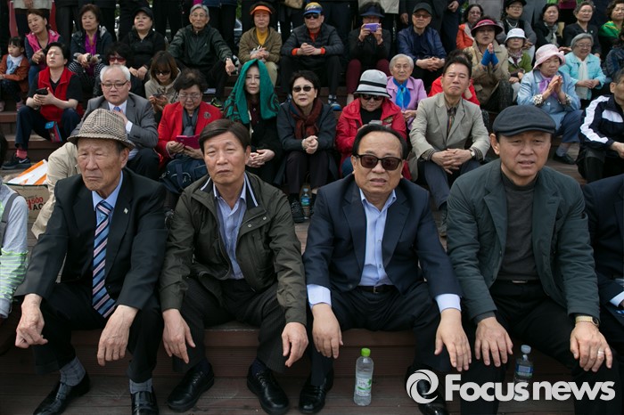 (서울=포커스뉴스) 10일 오전 서울 송파구 성내천 물빛광장에서 시민들이 김을동 새누리당 송파병 후보 유세를 보고 있다.