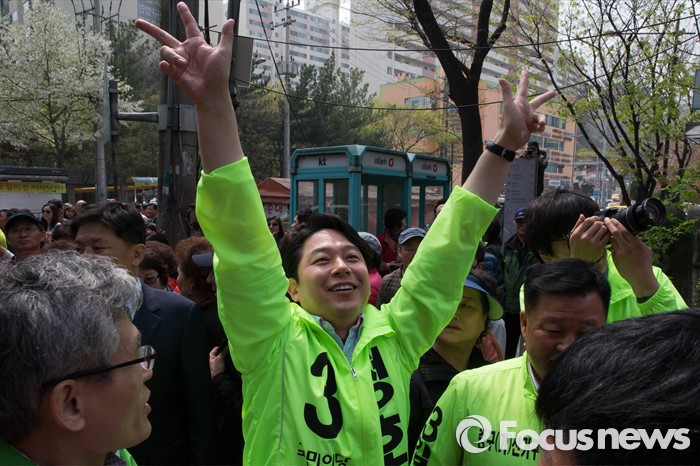 (서울=포커스뉴스) 20대 총선을 3일 앞둔 10일 오후 서울 성동구 옥수역 인근에서 정호준 국민의당 중구성동을 후보가 지지자들에게 인사하고 있다.