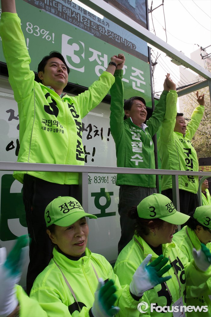 (서울=포커스뉴스) 20대 총선을 3일 앞둔 10일 오후 서울 성동구 옥수역 인근에서 안철수 국민의당 공동대표가 정호준 국민의당 중구성동을 후보 지원유세를 하고 있다.