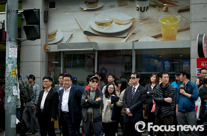 (용인=포커스뉴스) 10일 오후 경기도 기흥구청 인근 거리에서 시민 및 지지자들이 김종인 더불어민주당 비대위 대표 겸 선대위원장과 김민기 용인을 후보의 선거유세를 지켜보고 있다.