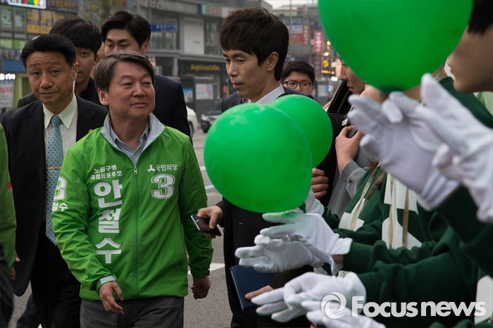 (서울=포커스뉴스) 20대 총선을 사흘 앞둔 10일 오후 서울 은평구 불광역 인근에서 안철수 국민의당 공동대표가 고연호 은평구을 후보와 합동유세를 하고 있다.