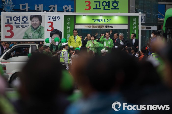 (서울=포커스뉴스) 20대 총선을 사흘 앞둔 10일 오후 서울 은평구 불광역 인근에서 안철수 국민의당 공동대표가 고연호 은평구을 후보와 합동유세를 하고 있다.