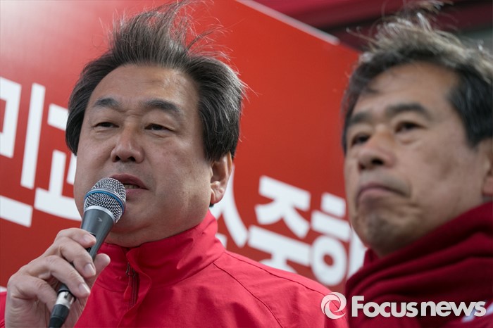 (울산=포커스뉴스) 김무성(왼쪽) 새누리당 대표가 11일 오전 울산시 동구 현대중공업 앞에서 안효대 울산 동구 후보 지원유세를 하고 있다.