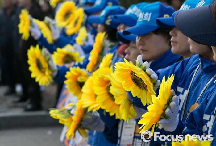 (서울=포커스뉴스) 20대 총선을 이틀 앞둔 11일 오전 서울 지하철 수서역 인근 거리에서 전현희 더불어민주당 강남을 후보의 선거운동원들이 지지를 호소하고 있다.