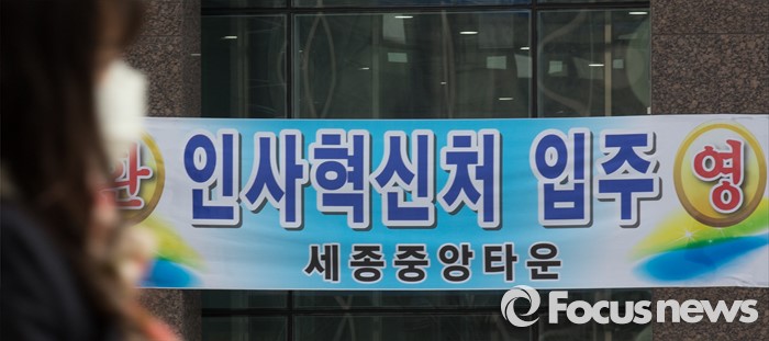 (세종=포커스뉴스) 세종시로 이전한 인사혁신처 직원들이 첫 출근한 11일 오전 인사혁신처 인근 상가건물에 입주환영 현수막이 붙어 있다.
