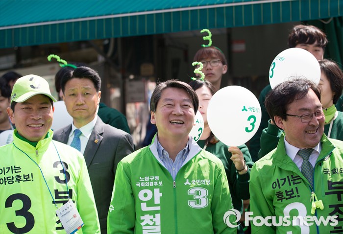 (안산=포커스뉴스) 안철수 국민의당 상임공동대표(가운데)가 11일 오전 안산시 단원구 고잔성당 사거리에서 부좌현 안산시 단원구을 후보 지원유세를 하고 있다.