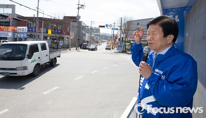 (대전=포커스뉴스) 20대 국회의원 선거를 이틀 남긴 11일 오전 대전 서구 흑석네거리에서 박병석 더불어민주당 후보가 지지를 호소하고 있다.
