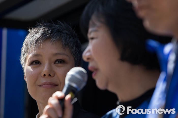 | △ 손혜원 후보 발언 듣는 이은미 |