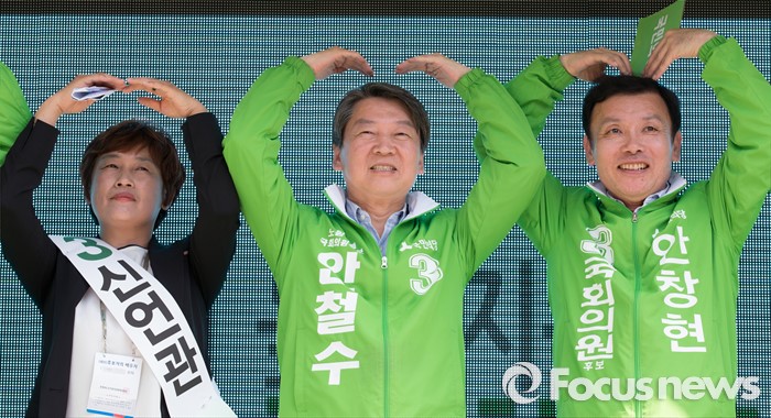 (청주=포커스뉴스) 안철수 국민의당 대표가 11일 오후 충북 청주시 사창사거리에서 20대 국회의원 충북도에 출마한 국민의당 후보의 지지를 호소하며 하트를 보이고 있다.