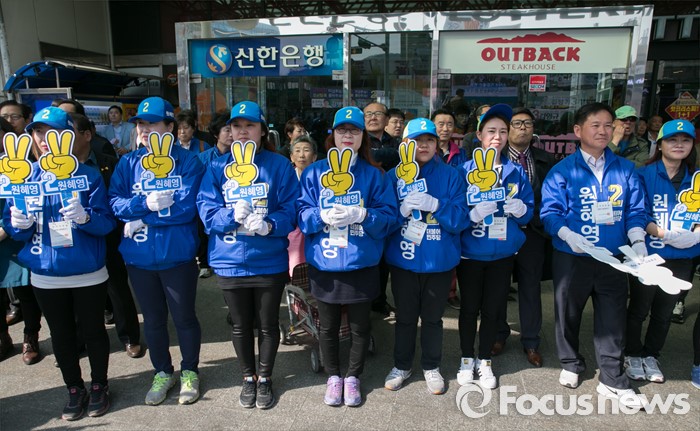 | △ 지지 호소하는 더민주 선거운동원들 |
