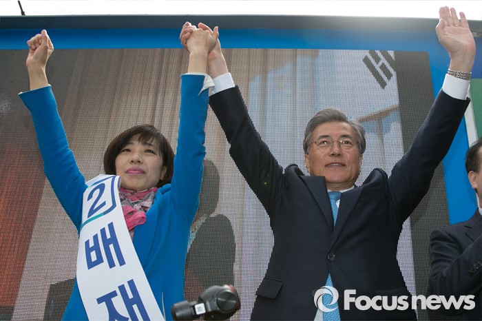 | △ 문재인·배재정, 두 손 높이 |