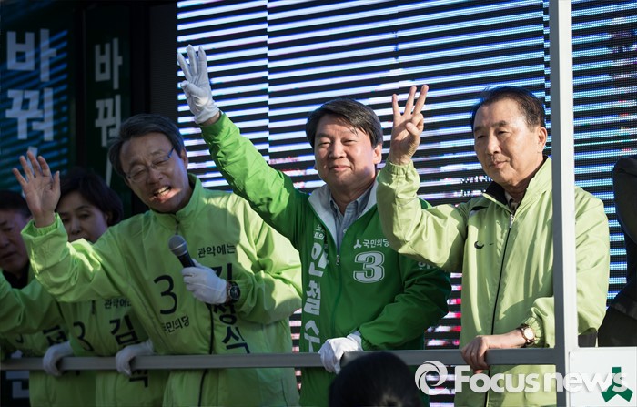 (서울=포커스뉴스) 안철수 국민의당 상임공동대표(가운데)가 11일 오후 서울 관악구 롯데백화점 앞에서 김성식 관악갑 후보(왼쪽) 지원 유세를 하고 있다.