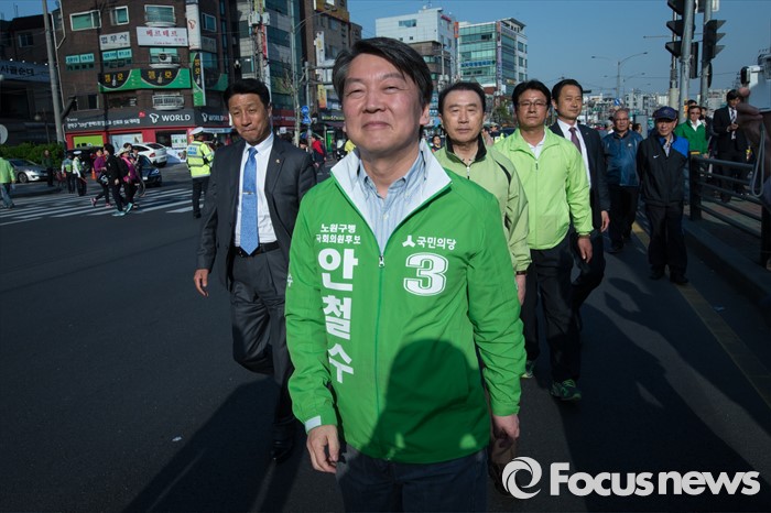 (서울=포커스뉴스) 안철수 국민의당 상임공동대표가 11일 오후 서울 관악구 롯데백화점 앞에서 김성식 관악갑 후보 지원 유세를 하고 있다.