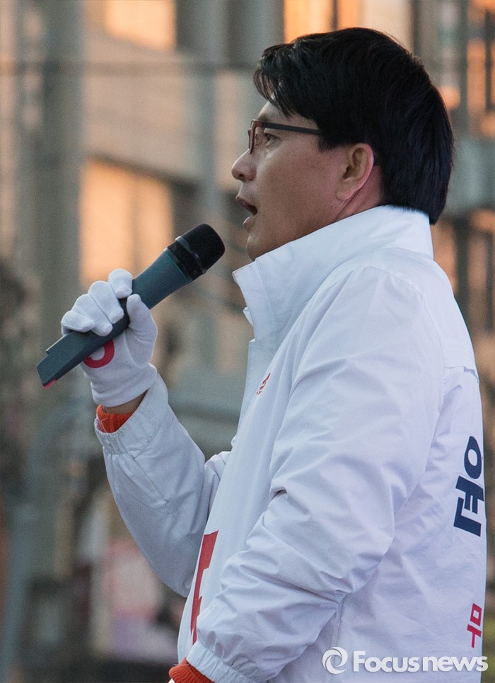(인천=포커스뉴스) 20대 총선을 이틀 앞둔 11일 오후 인천 남구 제물포역 앞에서 윤상현 무소속 남구을 후보가 유권자에게 지지호소 하고 있다.