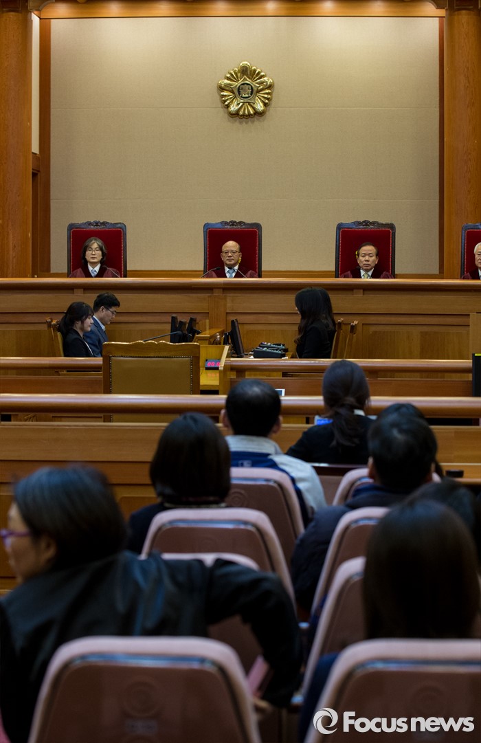 국내에서 일하고 있는 네팔·우즈베키스탄 출신의 근로자들은 "출국만기보험금 지급을 출국과 연관시킨 것은 보험금 수급권을 제한해 재산권 침해"라며 2014년 5월 헌법소원을 냈다.헌법재판소 대심판정. 양지웅 기자