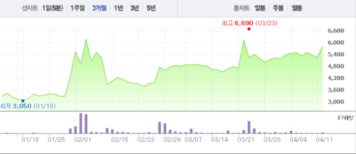 뇌염백신과 인플루엔자 백신의 생산원료를 공급하는 오리엔트 바이오 역시 2거래일 연속 상승세를 나타내고 있다. 오리엔트 바이오는 4.55%(70원) 뛴 1610원에 거래되고 있다.