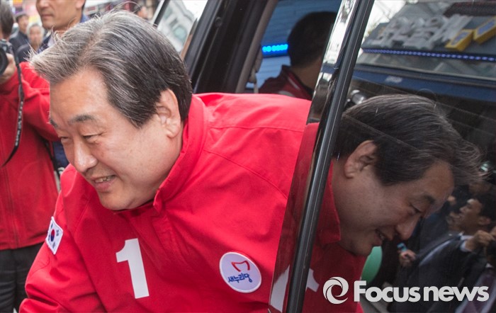 (수원=포커스뉴스) 4.13 총선을 하루 앞둔 12일 오전 경기 수원 정자시장에서 박종희 새누리당 수원시갑 후보 지원유세에 나선 김무성 대표가 차량에서 내리고 있다.