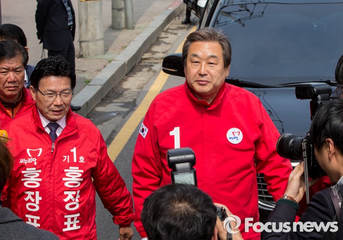 (안산=포커스뉴스) 4.13 총선을 하루 앞둔 12일 오전 경기 안산시 한대앞역 인근에서 홍장표 새누리당 안산시상록구을 후보 지원유세에 나선 김무성 대표가 유권자들의 지지를 호소하고 있다.