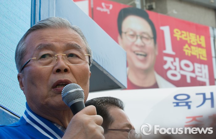 (청주=포커스뉴스) 국회의원 선거를 하루 앞둔 12일 오전 충북 청주 상당구 육거리시장 앞에서 김종인 더불어민주당 대표가 청주지역 후보의 지지를 호소하고 있다.