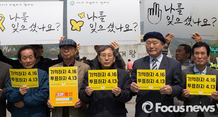 (서울=포커스뉴스) 제20대 국회의원 선거를 하루 앞둔 12일 오전 서울 광화문광장에서 2016 총선시민네트워크 회원들이 총선 투표참여를 호소하는 손팻말을 들고 있다.