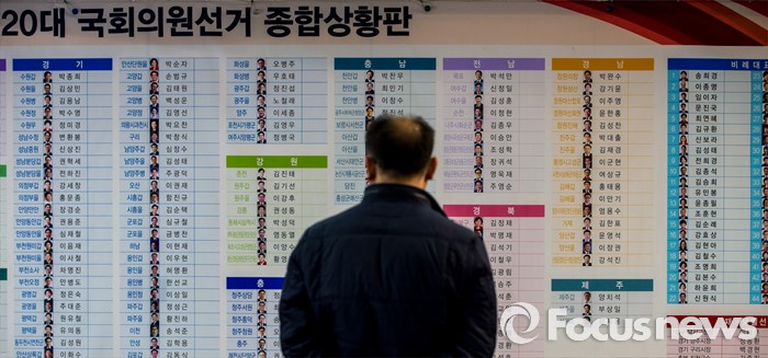 (서울=포커스뉴스) 제20대 국회의원선거를 하루 앞둔 12일 오전 서울 영등포구 새누리당사에서 관계자들이 선거상황실을 설치 하고 있다.