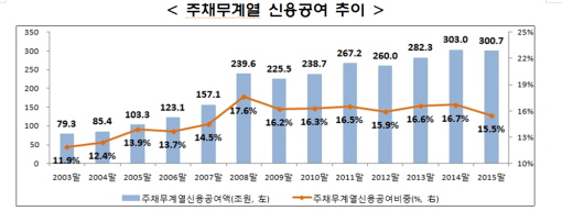 한편, 2016년도 주채무계열(39개)의 3월말 현재 소속계열회사 수는 4443개로 2015년도 주채무계열(41개·4370개)에 비해 73개 증가했다.