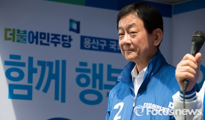 (서울=포커스뉴스) 2016 제20대 국회의원선거를 하루 앞둔 12일 오후 서울 용산구 후암시장 인근에서 김종인 더불어민주당 비대위 대표 겸 선대위원장의 지지호소를 진영 서울 용산구 후보가 듣고 있다.