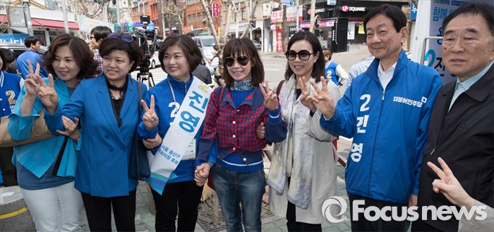(서울=포커스뉴스) 2016 제20대 국회의원선거를 하루 앞둔 12일 오후 서울 용산구 후암시장 인근에서 진영 서울 용산구 후보가 유권자들에게 지지를 호소하고 있다.