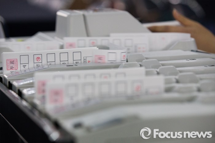 (서울=포커스뉴스) 4.13총선을 하루 앞둔 12일 오후 서울 영등포구 여의도고등학교 체육관에 마련된 개표소에서 선관위 관계자들이 투표지분류기를 점검하고 있다.