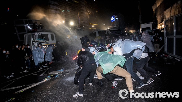 | △ 경찰의 물대포를 온몸으로 막는 대학생들 |