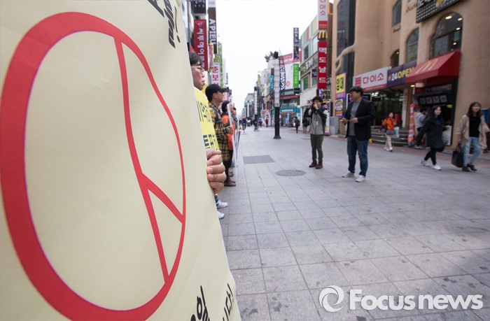 (청주=포커스뉴스) 12일 오후 충북 청주시 성안길에서 충북시민사회단체연대회의 구성원들이 충북도민 투표참여 촉구 기자회견 및 거리 캠페인을 벌이고 있다.