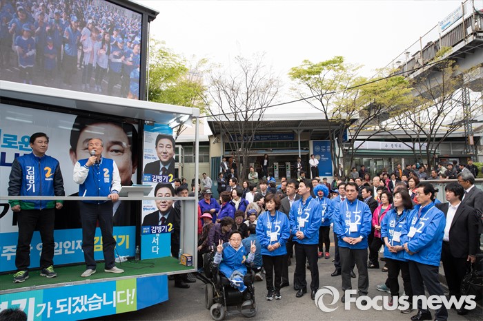 | △ 유권자들에게 지지호소 하는 더불어민주당 |