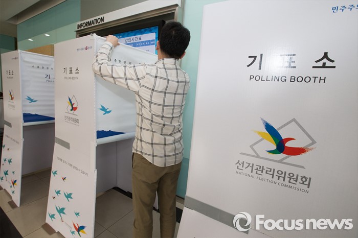 | △ 4.13총선 기표소 설치하는 관계자 |
